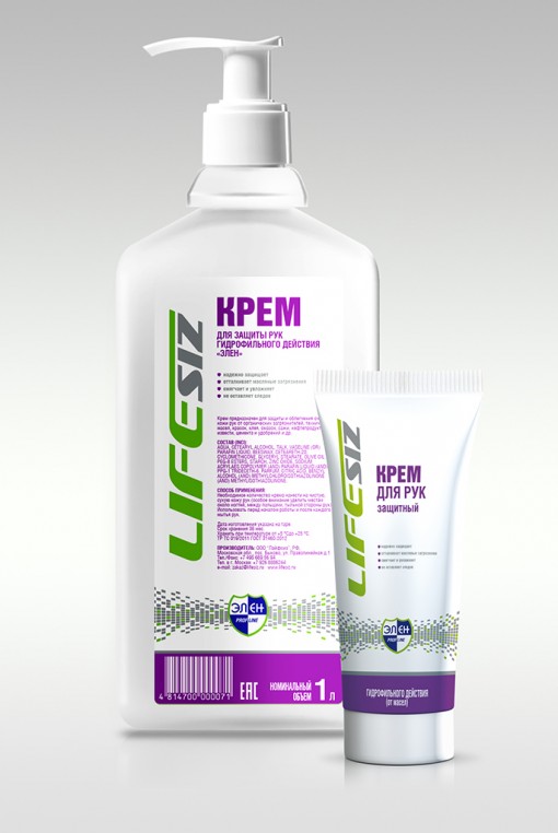 Крем гидрофильный Элен LifeSIZ для защиты рук от технических масел, флакон с дозатором 1000 мл.