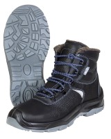 Описание: Ботинки из кожи c мягким кантом и глухим клапаном для защиты ног от общих производственных загрязнений в зимний период. Подкладка и вкладная стелька изготовлены из искусственного меха. Шнуровка обеспечивает комфортную адаптивную посадку. Светоотражающие элементы повышают видимость работников в темное время суток и на неосвещенной территории. Двухслойная маслобензостойкая полиуретановая подошва литьевого метода крепления имеет вставку в пяточной части подошвы, обладающую амортизационными свойствами и способную гасить ударные нагрузки при ходьбе. Глубина протектора ходового слоя обеспечивает хорошую сцепляемость с поверхностями и препятствует скольжению за счет рельефа протектора. Металлический подносок обеспечивает защиту пальцев стопы от механических повреждений ударной прочностью до 200Дж.
