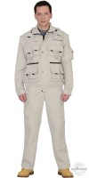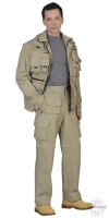 Сырье: Ткань: «CROWN-230» смесовая с ВО пропиткой: 80% п/э, 20 % х/б, пл. 230 г/м.Описание: Куртка прямого силуэта, с застежкой на молнию, с притачным поясом, с втачным капюшоном с противомоскитной сеткой. Полукомбинезон с центальной застёжкой на молнию, с двумя накладными карманами с клапаноми и с боковыми накладными карманами с наклонным входом. Ширина по спинке регулируется при помощи зластичной тесьмы.