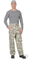 Сырье: тк. Механический стрейч, смесовая, с ВО пропиткой.Состав: 35% х/б; 65% п/э.Плотность: 260 г/м2.Описание: Брюки прямые с застежкой гульфика на молнию, цельновыкроенным поясом, частично стянутым резинкой и различными многофункциональными карманами.