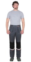 Описание: Полукомбинезон прямой, с застежкой спереди на молнию – гульфик и в правом боковом шве на пуговицы, с нагрудными, передними, задними карманами и карманом на правом боковым шве с молнией, с наколенниками, спинка с частичной стяжкой по талии, бретели регулируются при помощи застежек-фастексов и резинки. В полукомбинезоне предусмотрена лента светоотражающая для обозначения сигнальной видимости.