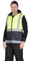 Сырье: Тк. "CROWN-230" 20% х/б, 80% п/э, поверхностная плотность 230 г/кв.мОписание: Полукомбинезон - прямой с контрастной отделкой, с бретелями, с застёжкой спереди и с застёжкой в правом боковом шве на три петли и три пуговицы. Полукомбинезон с различными многофункциональными карманами, спинка с частичной стяжкой по талии для лучшего прилегания по фигуре.