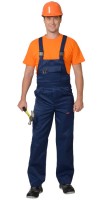 Сырье: тк. "CROWN-230"Описание: Полукомбинезон - прямой с контрастной отделкой, с бретелями, с застёжкой спереди и с застёжкой в правом боковом шве на три петли и три пуговицы. Полукомбинезон с различными многофункциональными карманами, спинка с частичной стяжкой по талии для лучшего прилегания по фигуре.