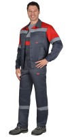 Сырье: Тк. Rodos 35%-х/б, 65%-п/э, поверхностная плотность 245г/м2Описание: Костюм «СИРИУС-МАСТЕР» состоит из куртки и полукомбинезона.Куртка короткая, с отложным воротником с центральной потайной застежкой на четыре петли и пуговицы, застежкой притачного пояса на одну петлю и пуговицу частично стянутого резинкой, с нагрудными и нижними накладными карманами.Спинка с отрезной кокеткой с настроченной на нее СОП шириной 50мм. Рукава втачные, двухшовные с притачными манжетами, застегивающимися на одну петлю и пуговицу.Воротник втачной отложной.Полукомбинезон прямого покроя, с застежкой гульфика и застежкой в правом боковом шве на три петли и пуговицы.Передние половинки полукомбинезона с боковыми накладными карманами с наклонным входом.Спинка по талии с эластичной тесьмой для прилегания изделия по фигуре.