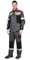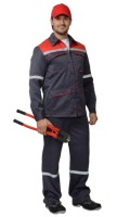Описание: Костюм «СИРИУС-МАСТЕР» состоит из куртки и брюк. Куртка короткая, с отложным воротником с центральной потайной застежкой на четыре петли и пуговицы и 1шт. верхняя сквозная; с притачным поясом с застежкой на одну петлю и пуговицу частично стянутым резинкой ткацкой по боковым швам; с нагрудными накладными карманами с клапанами застегивающиеся на потайную ленту «контакт»; с нижними накладными карманами. Рукава втачные, с притачными манжетами, частично стянутыми на резинку ткацкую. В куртке предусмотрена лента светоотражающая СОП (серая) ш.50мм для обозначения сигнальной видимости. Брюки прямого покроя с притачным поясом, застёгивающимся на одну пуговицу, пояс, регулирующийся по ширине при помощи ткацкой резинки по бокам; с 5-ю узкими шлевками; с застёжкой гульфика на три пуговицы; с двумя боковыми накладными карманами с наклонным входом. В брюках предусмотрена лента светоотражающая СОП (серая) ш.50мм для обозначения сигнальной видимости и кант готовый д.3мм контрастного цвета.