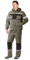 Описание: Куртка короткая с притачным поясом, центральной застежкой на пуговицы, с верхним накладным карманом с клапаном и нижними накладными карманами. Рукава двухшовные с манжетами на пуговицах, с отложным воротником. Полукомбинезон прямого покроя, с застёжкой гульфика и застёжкой в правом боковом шве на пуговицы, с накладными карманами. Бретели регулируются при помощи пряжек - фастексов и эластичной тесьмы. На куртке и брюках вставлена СО полоса 50 мм для обеспечения безопасной работы в условиях пониженной видимости..