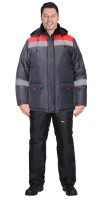 Описание: Куртка короткая, прямого силуэта, с пристегивающимся капюшоном, с центральной застежкой на тесьму-«молнию» накрытую ветрозащитным клапаном, застегивающимся на 4 кнопки, с отложным воротником, с верхними накладным и прорезным карманами с клапанами на кнопках, и нижними с объемными карманами с клапанами на кнопках, притачным поясом с эластичной лентой по бокам. Рукава с манжетами на кнопках. В костюме предусмотрена Светоотражающая полоса 50мм, для обеспечения безопасности работы в условиях пониженной видимости.