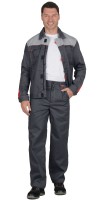 Сырье: Тк. "CROWN-230" 20% х/б, 80% п/э, поверхностная плотность 230 г/кв.мОписание: Куртка длинная, с потайной заст. на пуговицы, карманы с клапанами, налокотники. П/комб. с наколенниками.
