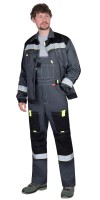 Сырье: Тк."Орион" 35% х/б, 65% п/э, поверхностная плотность 210 г/кв.м.Описание: Куртка прямого силуэта, короткая, с центральной потайной застёжкой на тесьму-"молнию", отложным воротником, нагрудными накладными карманами с клапаном, карманами в вертикальных швах.