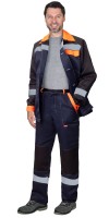 Сырье: Тк. "CROWN-230" 20% х/б, 80% п/э, поверхностная плотность 230 г/кв.мОписание: Кант красный. Куртка укороченная, с потайной застёжкой на "молнию". П/комб. с наколенниками-карманами