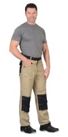 Описание: Брюки летние со съемным ремнем из смешанной ткани «Карелии-260» с водоотталкивающей пропиткой. Брюки с застежкой гульфика на молнию. Передние половинки с боковыми внутренними карманами и объемными наколенниками. На левом боковом шве накладной полуобъемный карман с фигурным клапаном на липучку. Задние половинки с кантом контрастного цвета, кокеткой и накладными фигурными карманами. По шаговым швам брюк усиленные фигурные накладки. Пояс брюк с широкими шлевками.