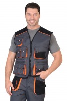 Костюм СИРИУС-ФАВОРИТ-МЕГА: куртка, полукомбинезон, темно-серый с красным и черным с СОП (узб.Саржа)