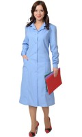 Описание: Халат с центральной застежкой на пуговицы. На полочках вертикальные рельефы. Фигурные карманы, воротник и манжеты с отделкой в виде канта контрастного цвета. Рукава 3/4.