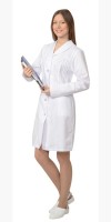 Описание: Халат женский прилегающего силуэта, с центральной застёжкой на кнопки. Втачной воротник стойка. Внутренние карманы в боковых швах. Юбка солнце-клеш. Рукава втачные 3/4. Съёмный ремешок.