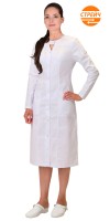 Описание: Халат прилегающего силуэта с центральной застёжкой на молнию. Воротник стойка. Два накладных нагрудных и два внутренних боковых кармана. Рукава втачные, длиной 3/4.