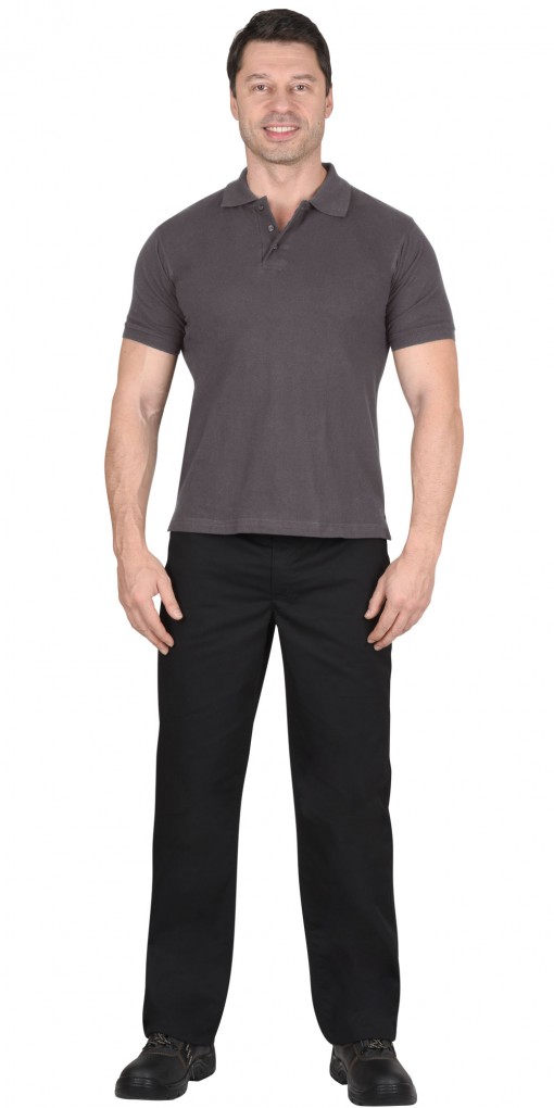 Рубашка-поло короткие рукава серая, рукав с манжетом