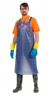 Сырье: Медицинская клеёнка.Описание: Фартук с цельнокроенным нагрудником, с шейной бретелью и боковыми завязками. Нагрудник обработан окантовочной лентой.
