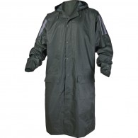 Описание: Влагозащитный плащ для защиты от атмосферных воздействий: дождя, ветра, пыли. Плащ с капюшоном (прячется в воротник на молнии), вентиляционными отверстиями под рукавами и по спинке (с сеткой), двумя карманами под клапанами, застежка на двойной ряд кнопок + двойная планка, муфты в рукавах, поставляется в индивидуальной многоразовой упаковке. Используемая конструкция застежки является наиболее надежной для плаща, так как при значительной длине застежки присутствует риск преждевременной поломки застежки-молнии, а при поломке одной или нескольких кнопок, изделие можно продолжать использовать. Плащ поставляется в индивидуальной многоразовой упаковке. Материал - ПВХ усиленный полиэстером (полиэстеровыми волокнами- нитями) с толщиной листа -0,18 мм, все соединения проклеены ПВХ лентой, цвет зеленый. Рекомендуется для использования поверх верхней одежды в дождливую погоду во всех отраслях промышленности, на транспорте и сельском хозяйствеЦвет:
