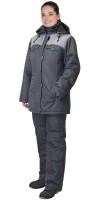 Костюм СИРИУС-ДВИН зимний: куртка дл., полукомбинезон т.серый со ср.серым и голубой отделкой
