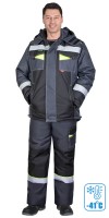 Описание: Куртка длинная, с центральной застежкой на "молнию", ветрозащитным клапаном на липучках, кулисой по линии талии со шнуром, нижними накладными карманами. Брюки с застежкой гульфика на пуговицы; притачным фигурным широким поясом со съемными бретелями с эластичной тесьмой. В костюме предусмотрены СОП шириной 50 мм.