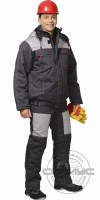 Сырье: Ткань верха: "CROWN" 80% п/э 20% х/б, пов. плотность 215 г/м2. Подкладка: "Таффета" 100% п/э. Утеплитель: "Синтепон" 150 г/м2 куртка - 3 слоя, п/к - 2 слояОписание: Костюм состоит из куртки и полукомбинезона. Куртка длинная прямого силуэта, с притачной утепленной подкаладкой, с центральной застежкой на двухзамковую молнию, с ветрозащитным клапаном с 4 кнопками, отложным воротником, контрастными кокетками полочек и спинки, с верхним накладным фигурным карманом на левой полочки и с верхним прорезным карманом на правой полочке, нижними накладными полуобъемными карманами с фигурным клапаном, застегивающимся на кнопку, с кулисой по линии талии. Полукомбинезон прямой, с притачной утепленной подкладкой, с регулируемыми за счет пряжек фастексов бретелями, с притачным нагрудником, с центральной застежкой на двухзамковую тесьму молнию, с нагрудными накладными карманами, с двумя боковыми внутренними карманами, с двумя нижними карманами на боковых швах,с фигурным клапаном застегивающимся на 2 кнопки на каждом клапане. В костюме предусмотрен СОП шириной 50 мм.