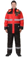 Костюм СИРИУС-СТАН зимний: куртка, полукомбинезон красный с черным и лимонной отделкой и СОП