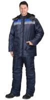 Описание: Брюки прямые на утеплённой подкладке, с застежкой спереди на молнию – гульфик. Брюки с широким поясом с застежкой на 2 пуговицы, с боковыми накладными карманами с молнией, со съёмными бретелями. Бретели пристегиваются к брюкам при помощи пуговиц и петель, регулируются по длине защелками-фастексами. По боковым швам внизу разрез с молнией. В брюках на задних половинках предусмотрен кант СВМ 3мм 100К для обозначения сигнальной видимости.
