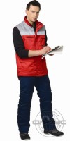 Описание: Жилет утепленный, стеганный, на подкладке, прямого силуэта, с втачным капюшоном, с центральной бортовой застежкой на тесьму - "молния", накрытую ветрозащитным клапаном, пройма окантована резинкой. Полочки с прорезными карманами, на левой полочке нагрудный прорезной карман, застегивающийся на тесьму - "молния"