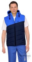 Описание: Жилет утеплённый с воротником стойка, с центральной застёжкой на тесьму "молния" до верха, с пристёгиваемым капюшоном. Полочка с двумя нижними карманами с клапанами, внутренней стороны на левой полочке расположен накладной карман на молнии, спинка удлинённая