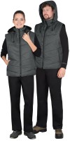 Описание: Жилет утепленный из стёганного полотна, с центральной бортовой застёжкой молния, с втачным капюшоном, с общей кокеткой полочек и спинки, с карманами с молнией в шве рельефа, с удлинённой фигурной линией низа на спинке. Низ куртки, пройма и лицевой вырез капюшона окантованы эластичной тесьмой.
